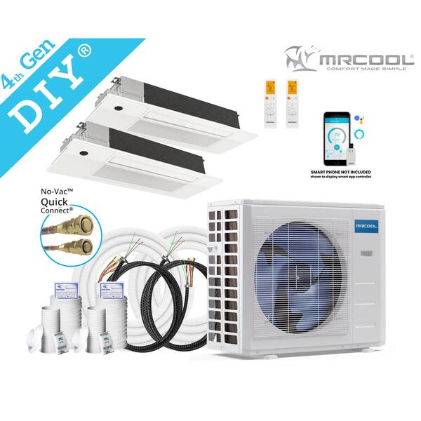 DIY 18,000 BTU 1.5-Ton 2-Zone 21 SEER Ductless Mini-Split AC and Heat Pump with Cassettes 9K+9K & 50,50ft Lines