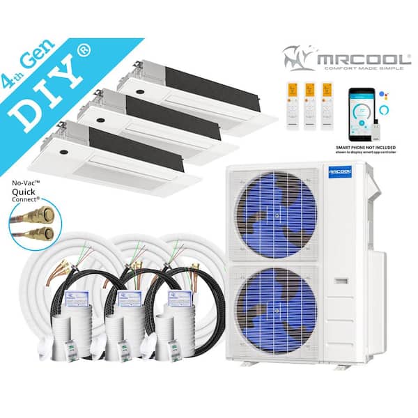 DIY 48,000 BTU 4-Ton 3-Zone 20.5 SEER Ductless Mini-Split AC and Heat Pump with Cassettes 12K+18K+18K & 25,50,50ft Lines