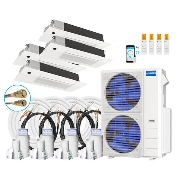 DIY 48,000 BTU 4-Ton 4-Zone 20.5 SEER Ductless Mini-Split AC and Heat Pump with Cassettes 9K+9K+18K+18K & 35,35,50,50ft