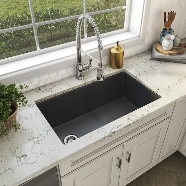 31 in. Undermount Single Bowl Matte Gray Quartz Kitchen Sink