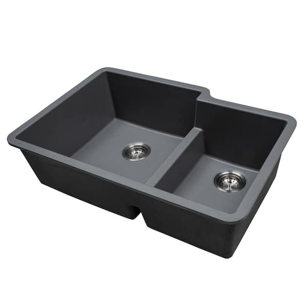 32 in. Undermount 60/40 Double Bowl Matte Gray Quartz Kitchen Sink