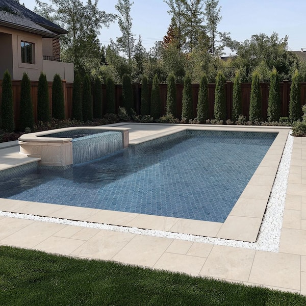 • Soft beige marble coping with tumbled edges and rich tone