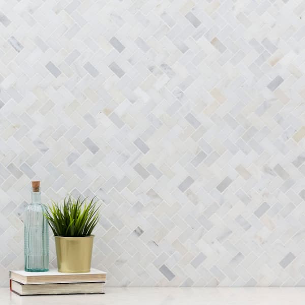 Arabescato Carrara Herringbone 12 in. x 13 in. x 0.38 in. Honed Marble Mesh-Mounted Mosaic Tile (9.4 sq. ft./Case)