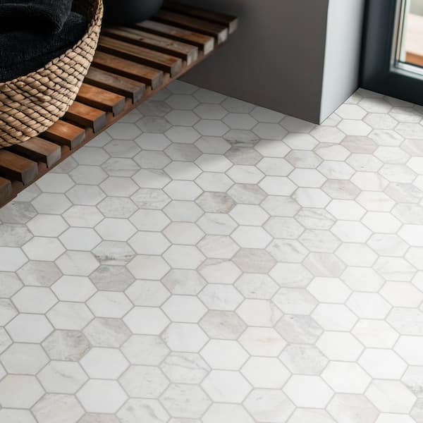 Arabescato Venato White 10 in. x 13 in. Hexagon Honed Marble Mosaic Floor and Wall Tile (0.89 sq. ft. /Each)