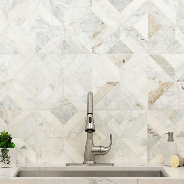 Arabescato Venato White Argyle 12 in. x 12 in. x 0.38 in. Honed Marble Mesh-Mounted Mosaic Tile (1 sq.ft./Each)