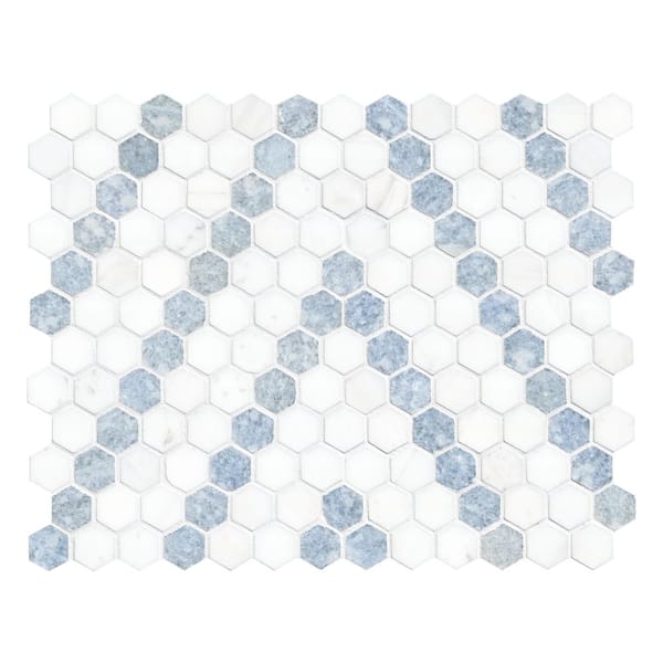 Azula Sazi 11 in. x 14 in. x 0.39 in. Polished Marble Mesh-Mounted Mosaic Floor and Wall Tile (10.4 sq. ft./Case)