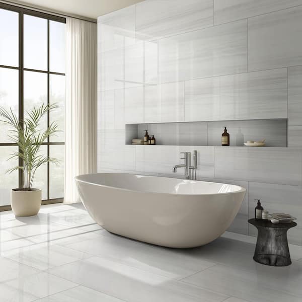 Bianco Dolomite 24 in. x 48 in. Polished Porcelain Mable Look Floor and Wall Tile (8 sq. ft./Each)