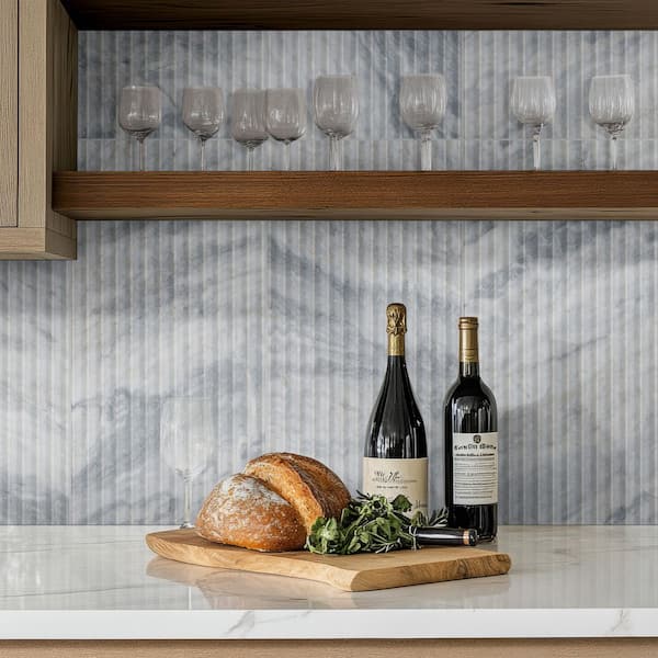 Capri Blue Valentino Fluto 12 in. x 24 in. Honed Marble Fluted Wall Tile (50 cases/200 sq. ft. /pallet)
