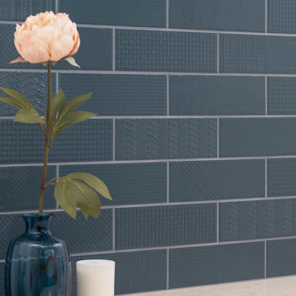 Citylights Navy 3D 4 in. x 12 in. Glossy Ceramic Subway Wall Tile (9.69 sq. ft./Case)