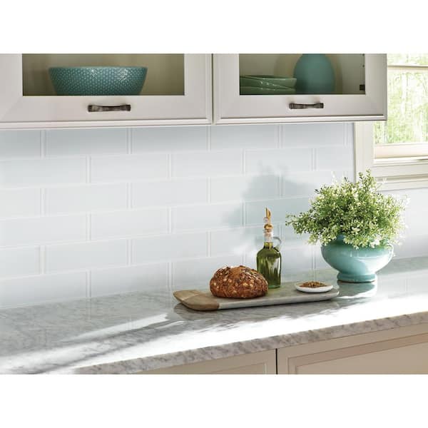 Ice 3 in. x 9 in. Glossy Glass White Subway Tile Sample (0.19 sq. ft.)
