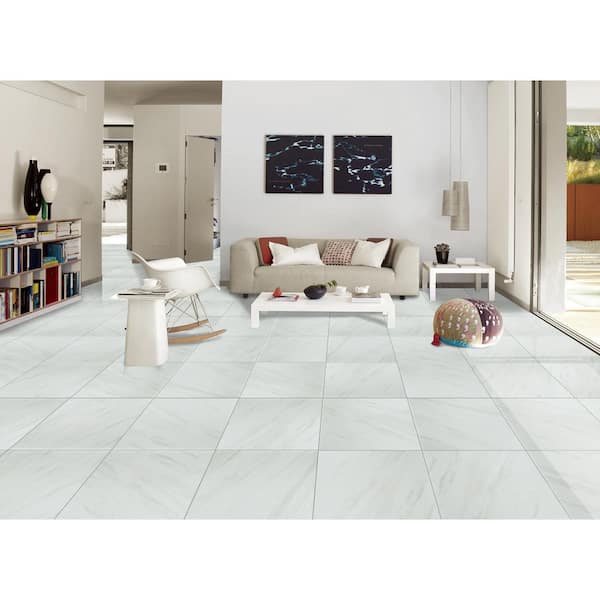 Kolasus White 24 in. x 24 in. Matte Porcelain Marble Look Floor and Wall Tile (4 sq. ft./Each)