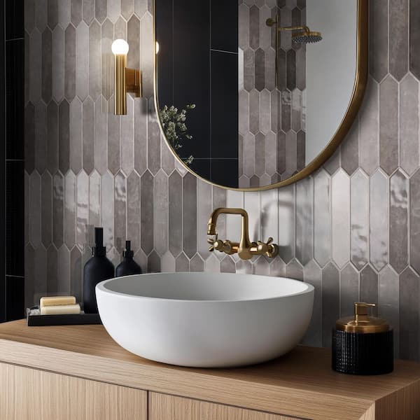 • Modern picket ceramic wall tile with high tonal variation in gray