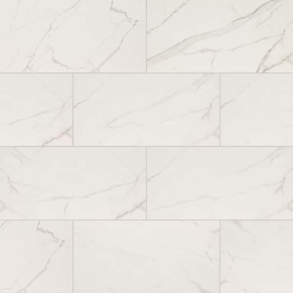 • Marble look porcelain w/ bright white base and soft gray veining
