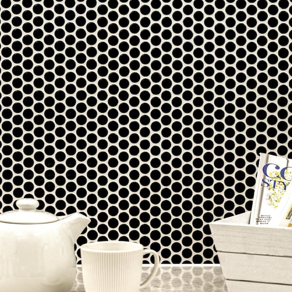 Penny Round Nero 12 in. x 13 in. Glossy Porcelain Mosaic Tile (14.4 sq. ft. / Case)