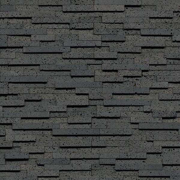 Puka Lava Stone Black 3D Ledger Panel 6 in. x 24 in. Honed Basalt Wall Tile (1 sq. ft./Each)