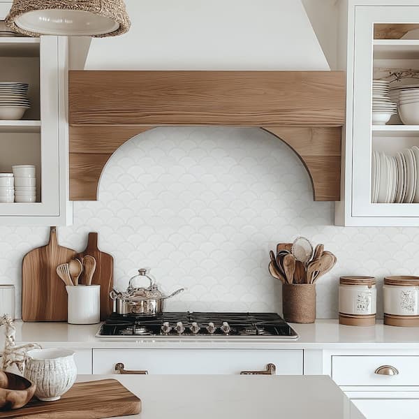 Retro Bianco Scallop 10 in. x 13 in. x 0.24 in Glossy Porcelain Mesh-Mounted Mosaic Floor and Wall Tile(0.91sq.ft./each)