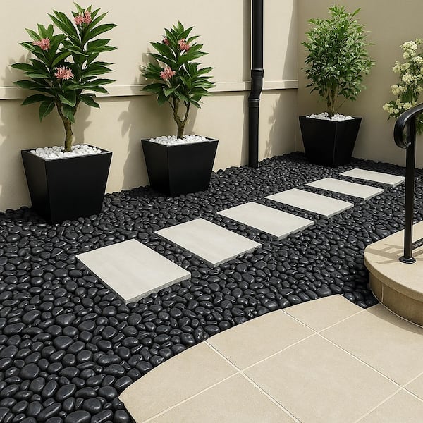 Super Black Polished 0.5 cu. ft. 1 in. to 2 in. Bagged Landscape Pebbles (55 Bags/30 cu. ft. )
