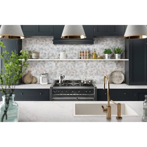 Take Home Sample - Akoya Pearl Hexagon 4 in. x 4 Glass Mosaic Tile