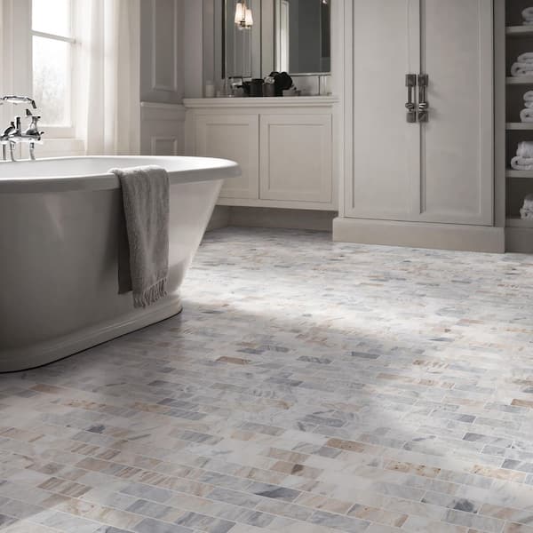 Take Home Sample - Capri Blue Subway 6 in. x 6 in. Honed Mosaic Marble Floor and Wall Tile