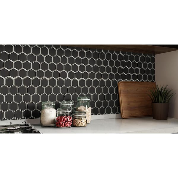 Take Home Sample - Metallic Gray 4 in. x 4 in. Beveled Hexagon Glass Mosaic Tile