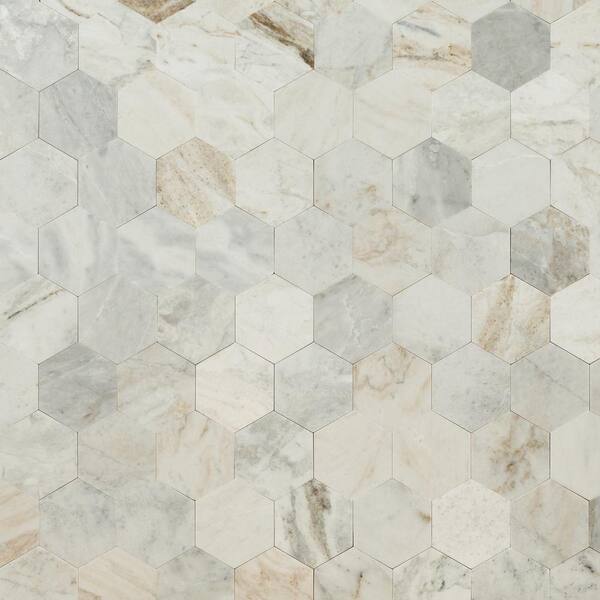 Take Home Tile Sample-Arabescato Venato 4 in. x 4 in. Peel and Stick Marble Mosaic Tile
