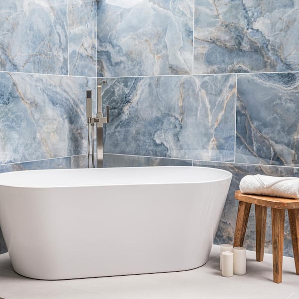 Take Home Tile Sample-Aura Blue 4 in. x 4 in. Polished Porcelain Floor and Wall Tile
