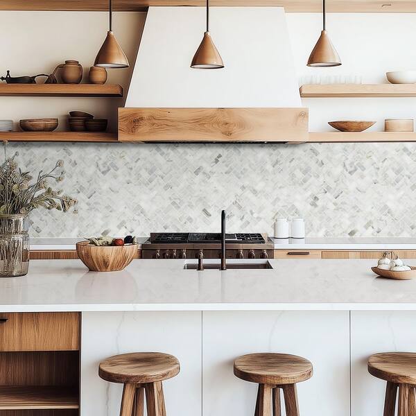 Take Home Tile Sample - Calacatta Cressa Herringbone 4 in. x 4 in. Honed Marble Mesh-Mounted Mosaic (0.25 sq. ft.)