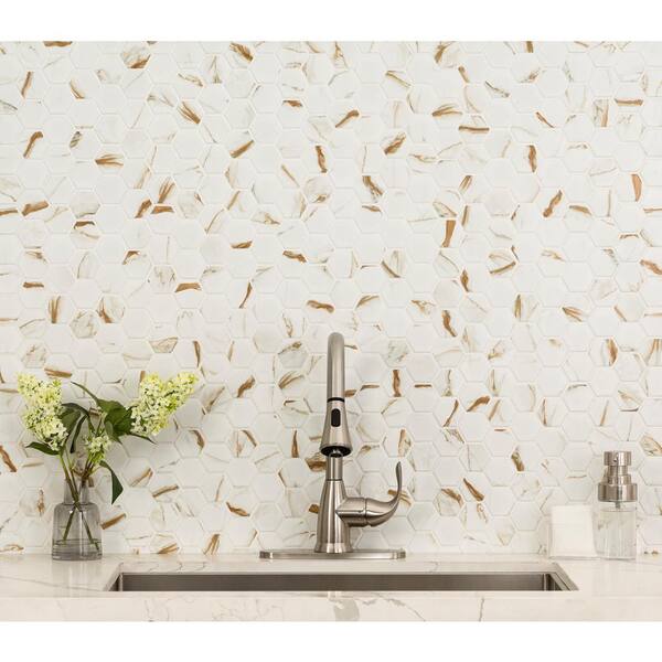 Take Home Tile Sample-Calacatta Gold Hexagon 4 in. x 4 in. x 6 mm Matte Porcelain Mosaic Tile