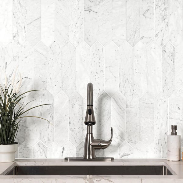 Take Home Tile Sample - Carrara White Picket 6 in. x 6 in. x 8 mm Honed Marble Mosaic Tile