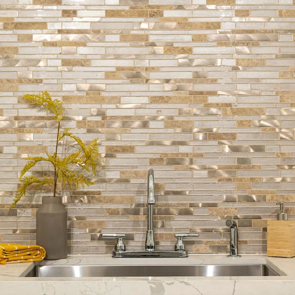Take Home Tile Sample - Champagne Toast Interlocking 4 in. x 4 in. Glass Metal Stone Mesh-Mounted Mosaic Tile