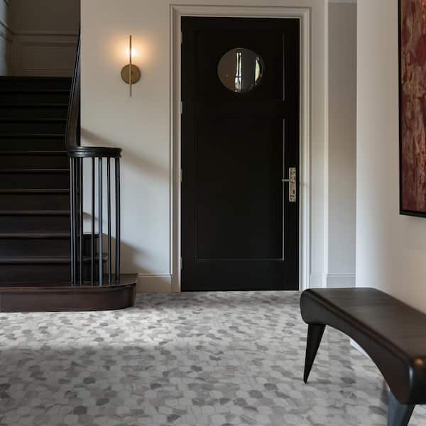 Take Home Tile Sample-Edessa Scallop White 4 in. x 4 in. Polished Marble Mosaic Tile