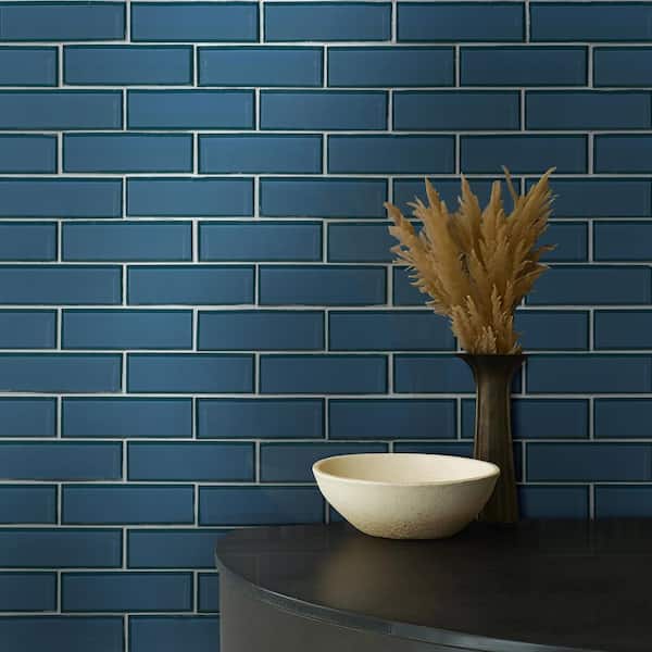 Take Home Tile Sample - Haiku Sapphire 6 in. x 6 in. x 8 mm Beveled Mixed Glass Mosaic Tile