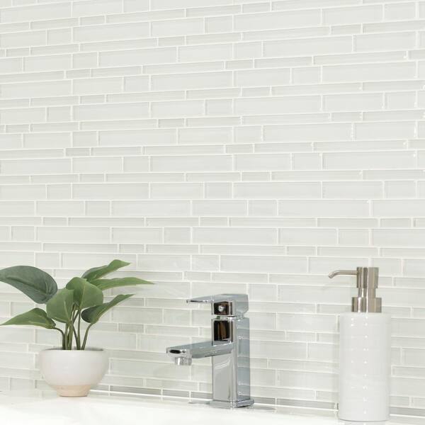 Take Home Tile Sample - Ice Interlocking 6 in. x 6 in. Glass Mesh-Mounted Mosaic Tile