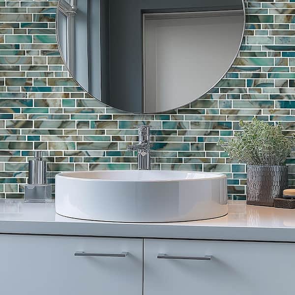 Take Home Tile Sample-Night Sky 4 in. x 4 in. Mesh-Mounted Glossy Mosaic Glass Wall Tile