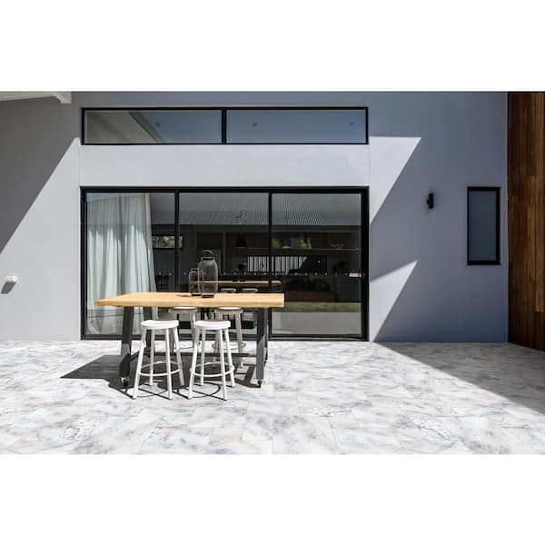 Take Home Tile Sample-Sierra White 1.18 in. x 4 in. x 4 in. Sandblast Marble Paver Tile Kit