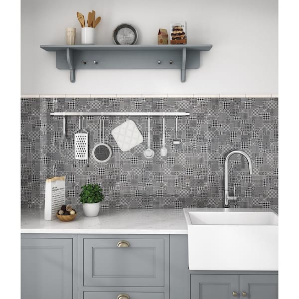 Take Home Tile Sample - Tetris Nero Encaustic 4 in. x 4 in. Honed Marble Mosaic Tile