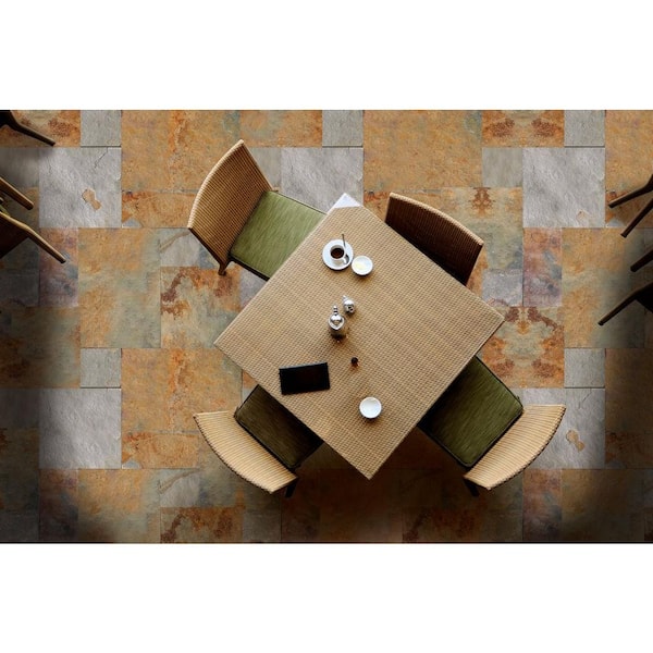 Take Home Tile Sample-Three Rivers Gold 4 in. x 4 in. Textured Slate Stone Look Floor and Wall Tile