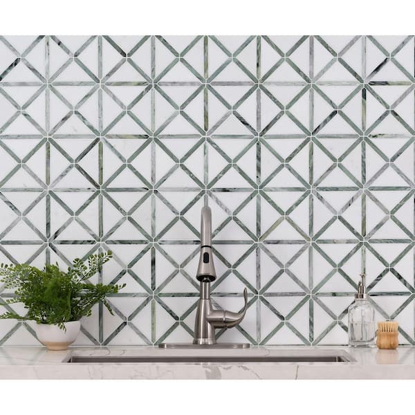 Take Home Tile Sample-Verdant Green Geometrica Pattern 4 in. x 4 in. x 10 mm Polished Marble Mosaic Tile