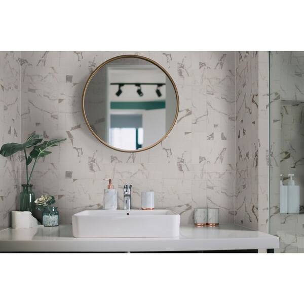 Take Home Tile Sample - White Vena 4 in. x 4 in. Glazed Ceramic Mesh-Mounted Mosaic Tile