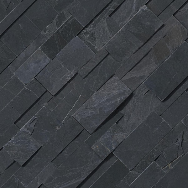 Take Home Tile Sample - XL Premium Splitface Black Ledger Panel 4 in. x 4 in. Slate Wall Tile