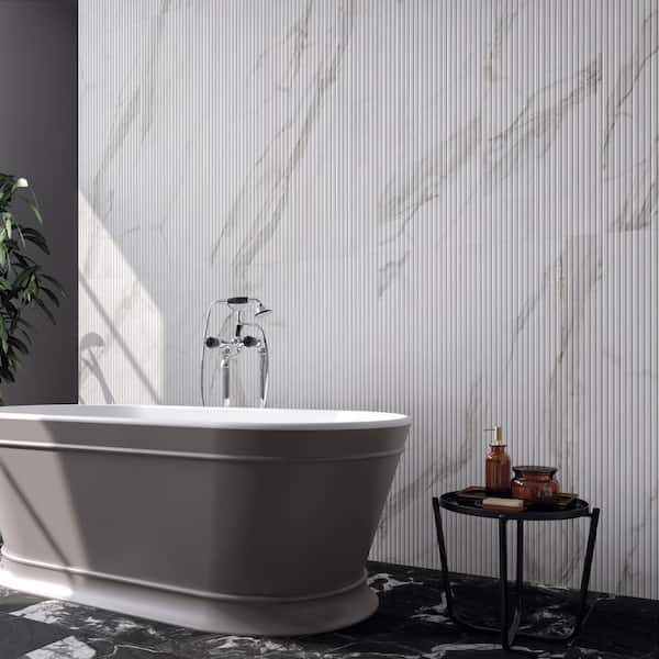 UrbanSlat Marmiro Grey 16 in. x 48 in. Satin Ceramic Fluted Wall Tile (5.17 sq. ft. /Each)