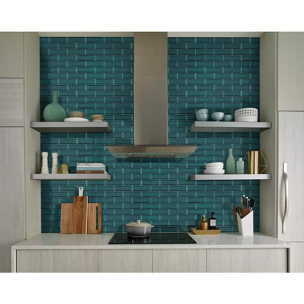 Verde Azul Beveled 2.5 in. x 8 in. x 8 mm Glossy Glass Blue Subway Tile (0.14 sq. ft.)