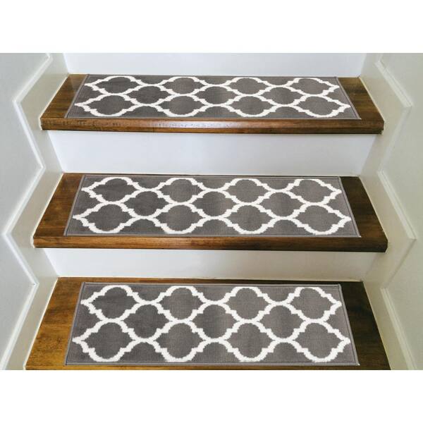 Trellis Collection Dark Gray 9 in. x 28 in. Polypropylene Stair Tread (Set of 7)