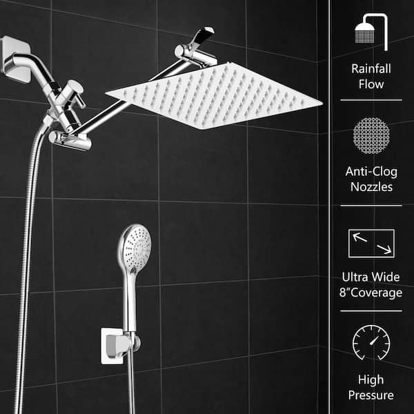 5-Spray 8 in. Dual Wall Mount Fixed and Handheld Shower Head 1.8 GPM in Chrome