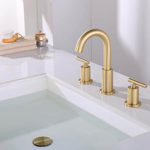 8 in. Widespread Double Handle Bathroom Faucet with Drain and Gooseneck in Brushed Gold