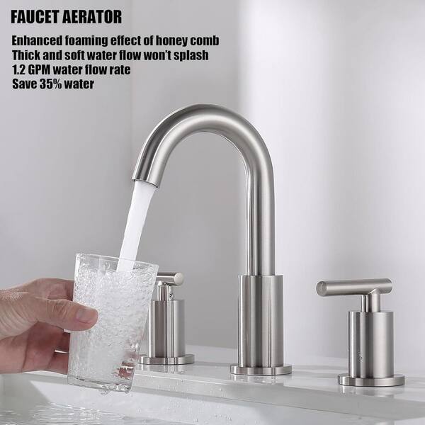 8 in. Widespread Double Handle Bathroom Faucet with Drain and Gooseneck in Brushed Nickel