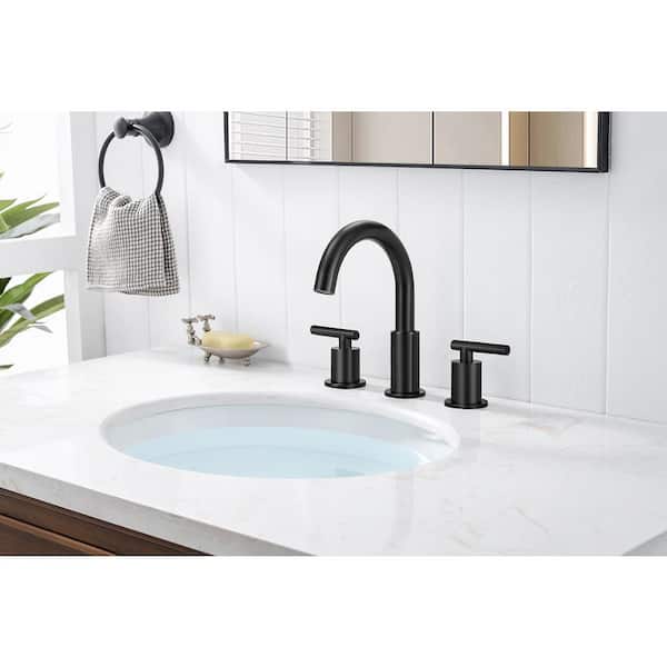 8 in. Widespread Double Handles Bathroom Faucet with Pop-Up Drain in Matte Black