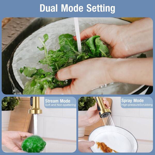 Brushed Gold 17.7 in. H Pull Down Sprayer Kitchen Faucet with 360° Spout Swivel
