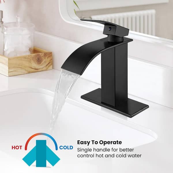 Single Handle Waterfall Spout Single Hole Bathroom Faucet and Drain and Stainless Steel in Matte Black