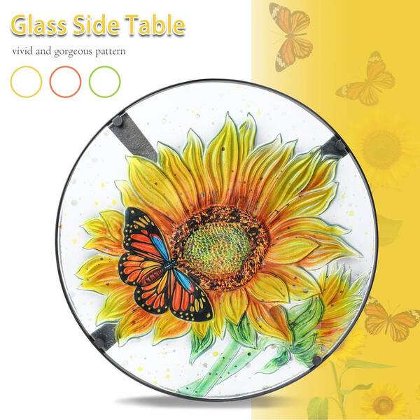 14 in. Patio Side Table Outdoor Accent Table Bistro Coffee Table Plant End Table Small Porch Table Glass Balcony